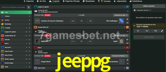 O jeeppg oferece uma grande seleção de opções de apostas em e-sports com probabilidades competitivas